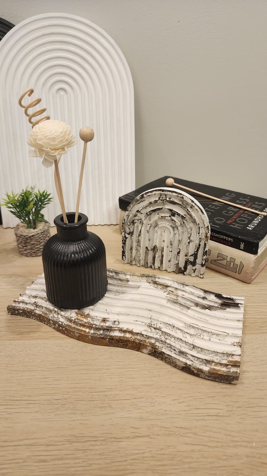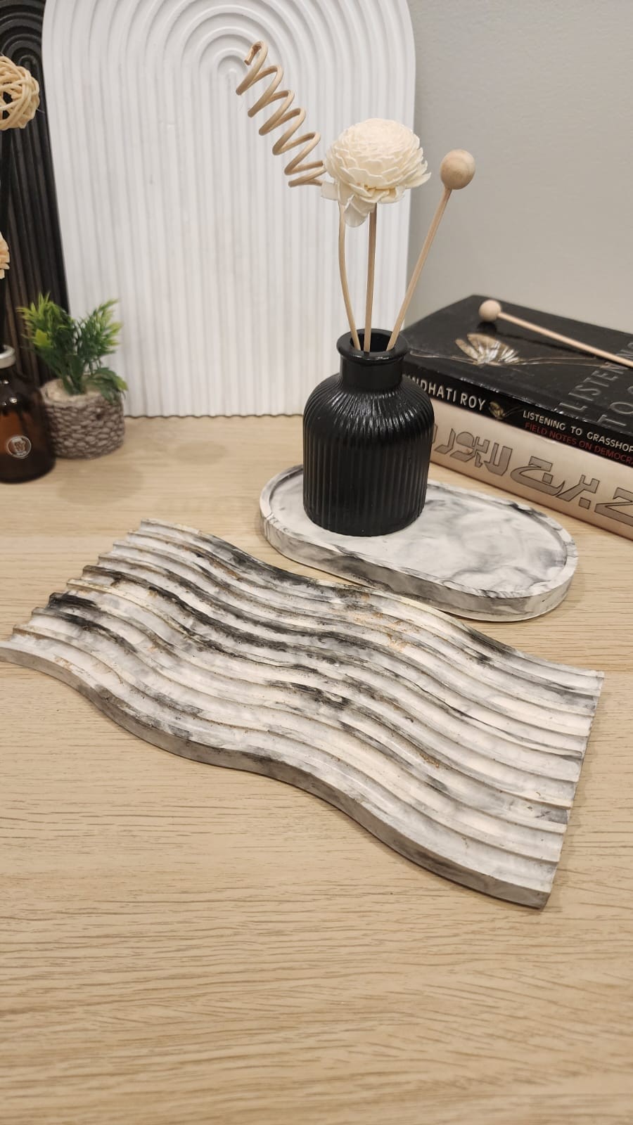 Bring a touch of serenity to your space with our Wave Vanity Tray. This wavy decorative tray adds a minimalist design element, perfect for creating calm vibes. It can be used on any table, in any room, in kitchen etc, this tray is both beautiful and functional. Elevate your decor today!