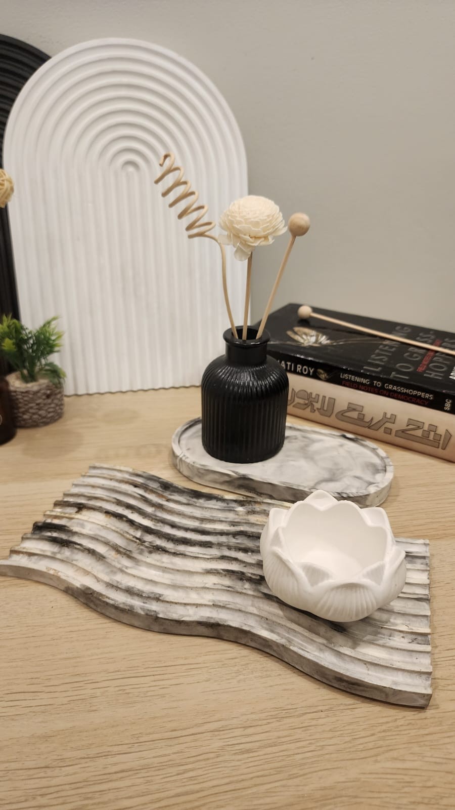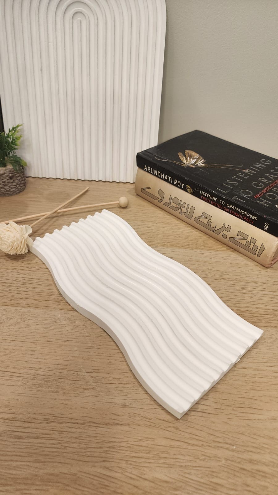 Bring a touch of serenity to your space with our Wave Vanity Tray. This wavy decorative tray adds a minimalist design element, perfect for creating calm vibes. It can be used on any table, in any room, in kitchen etc, this tray is both beautiful and functional. Elevate your decor today!