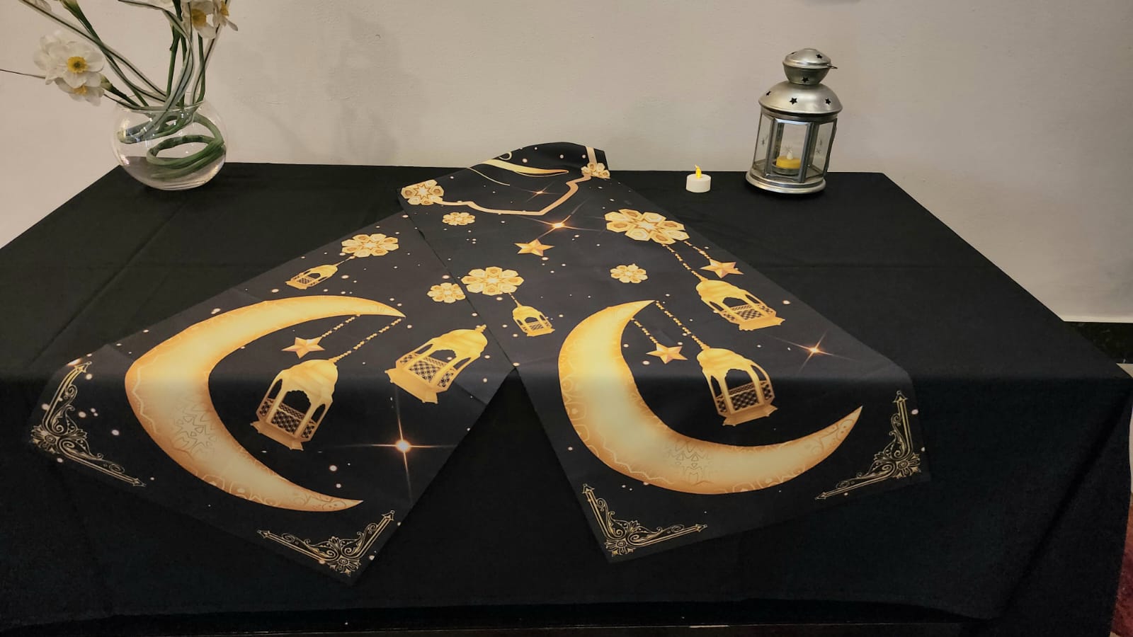Material : Polyester Color : Black & Gold Size : 180 x 35 cm