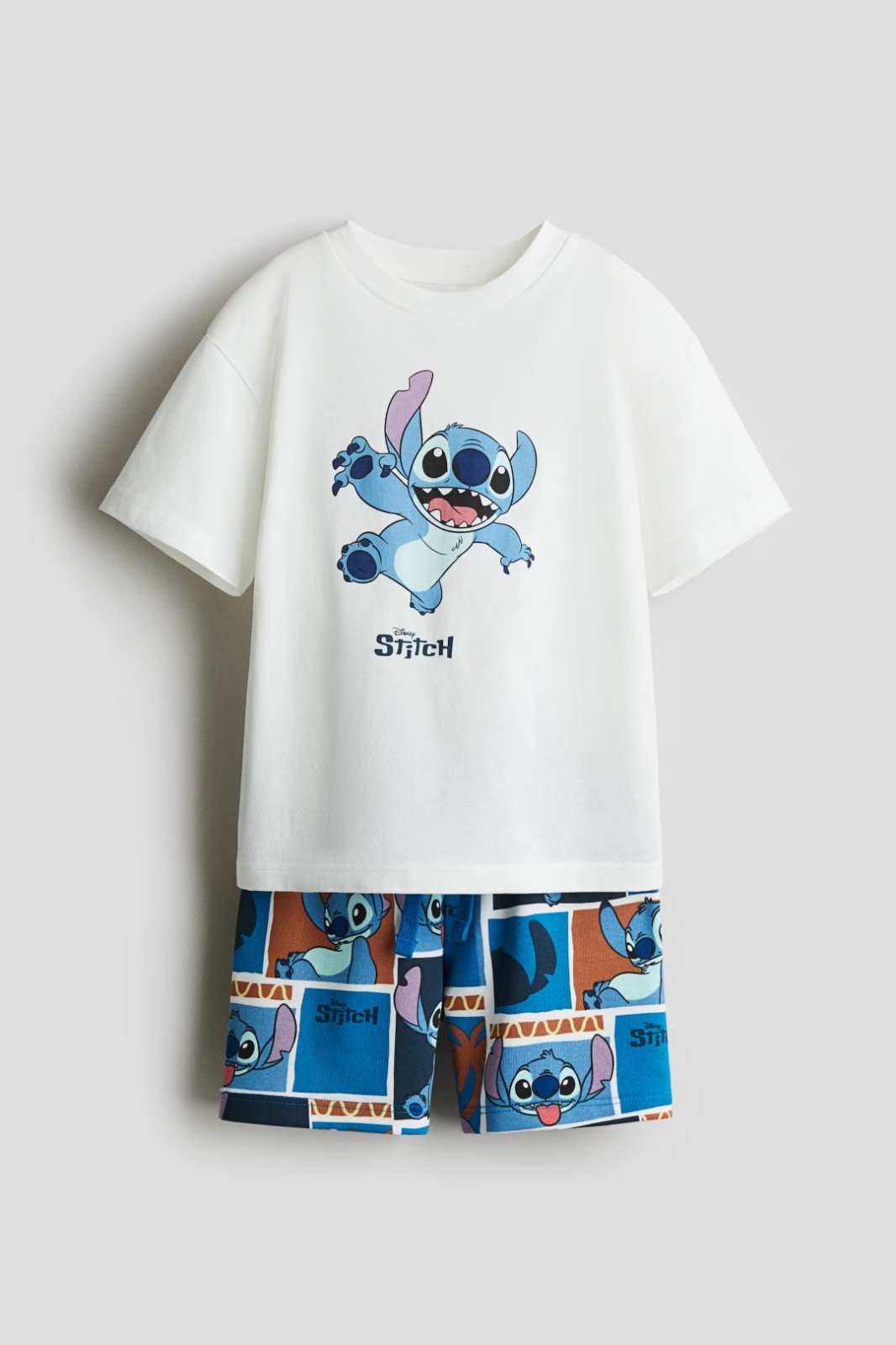 Matching set with a T-shirt and a pair of shorts in soft fabric with print motifs. T-shirt in cotton jersey with dropped shoulders, wide sleeves and ribbing around the neckline. Shorts in lightweight sweatshirt fabric with covered elastication and a drawstring at the waist.