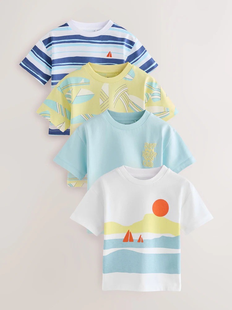 Blue/Yellow Surf Short Sleeve T-Shirts 4 Pack