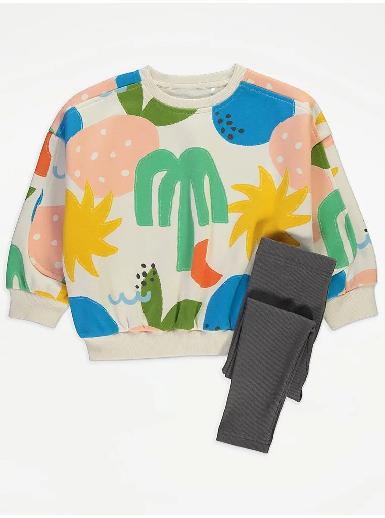 Bright Palm Tree Sweatshirt and Ribbed Tights Outfit