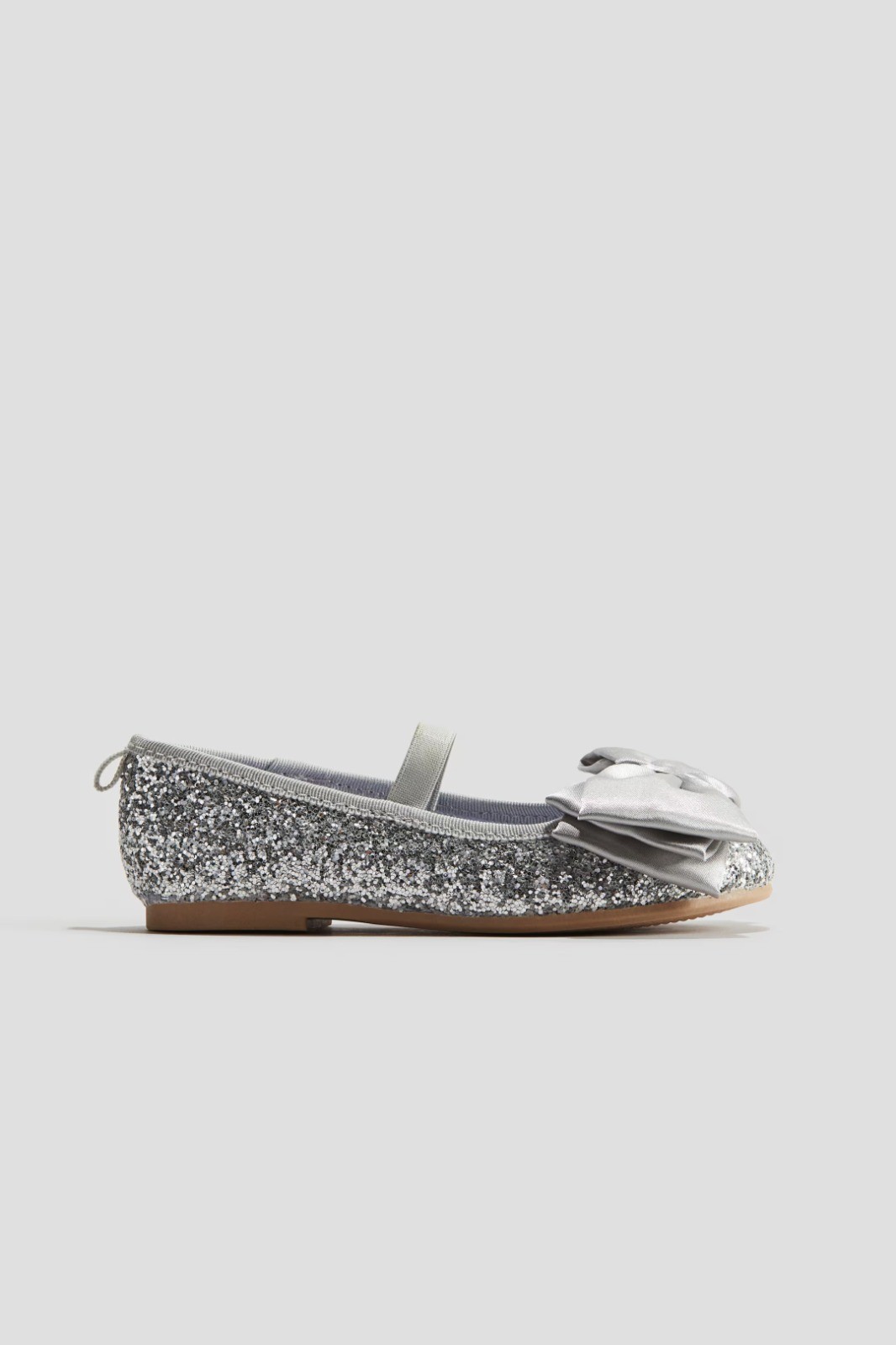 Glittery ballet pumps with an elastic strap over the foot and a grosgrain loop at the back. Satin linings and printed insoles in Cellfit™ technical foam for extra comfort. Fluted soles.
