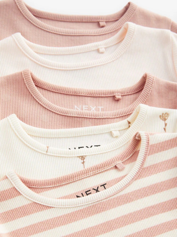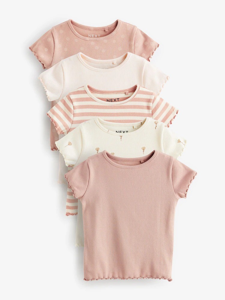 Pink Ditsy Rib Short Sleeve T-Shirts 5 Pack